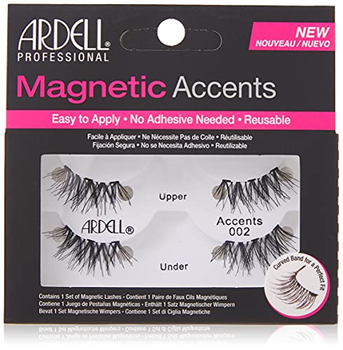 Ardell False Eyelashes Magnetic Accent 001 Black Lashes Light Volume Medium Length Natural Accent Lash Flared Lash Style Invisiband Human Hair Ve