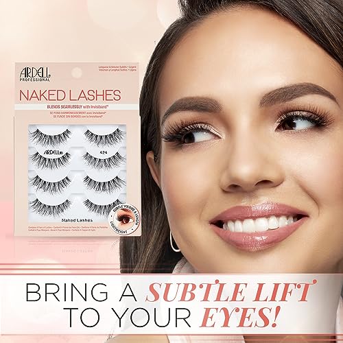 Ardell False Eyelashes Naked Lash 424 4 Pairs Multipack Black Fluffy Barely-There Natural Enhances Eyes Super Soft Lashes Comfortable Invisiband