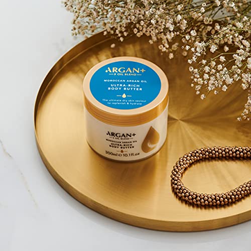- ULTRA RICH BODY BUTTER: Tackle tired, dry skin with the Argan+ Ultra-Rich Body Butter, a nutrient-rich blend of moisturising oils and skin-nourishing coconut oil designed to nurture your skin and leave it hydrated and soft. Available in a 300ml tub.
