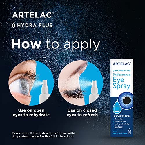 - DOSAGE - Apply 1-2 sprays of ARTELAC HYDRA PLUS Performance Eye Spray into the eye or onto closed eyelids as the need arises. You can use it every day and as often as you want. There is no limit to the duration of use