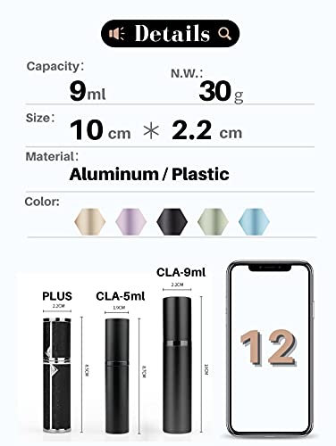 Home Fragrance AsaNana Perfume Atomiser, Refillable & Travel Size Perfume Bottle, 9 ml (P9-Black)