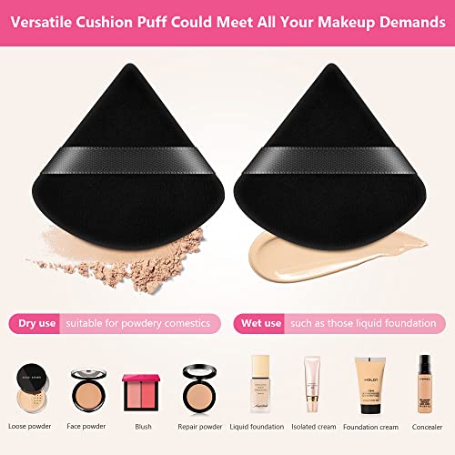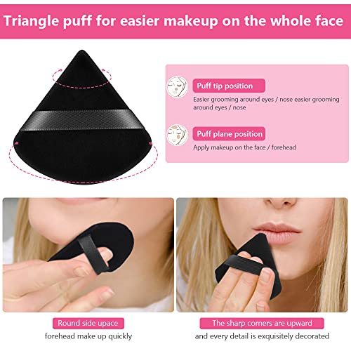 • 【INTIMATE DESIGN】: This powder puff is designed with triangular and curved surface, and the rounded edges are suitable for large areas: forehead, cheeks and neck; Triangular edges decorate the corners of the mouth, around the eyes and nose, helping you apply makeup quickly. Each makeup puff comes with a strap that allows you to insert your finger for easy control of the puff.