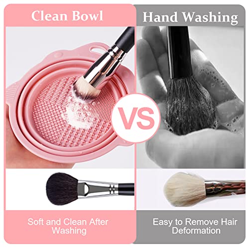 - 【EASY & EFFORTLESSLY USE】When using, you just need to pour some cleaning solution and water on the silicone cleaning bowl, gently move your brush on the cleaning bowl, then rinse the makeup brush, makeup sponge, powder puff, end up with a whole new set of makeup tools.