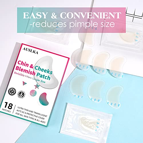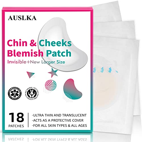 AUSLKA Pimple Patches for Chin & Cheeks -18 Patches, Hydrocolloid Patch - Blemish Patches - Pimple Stickers - Spot Dots - Zit Breakouts