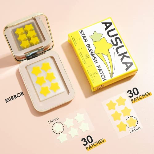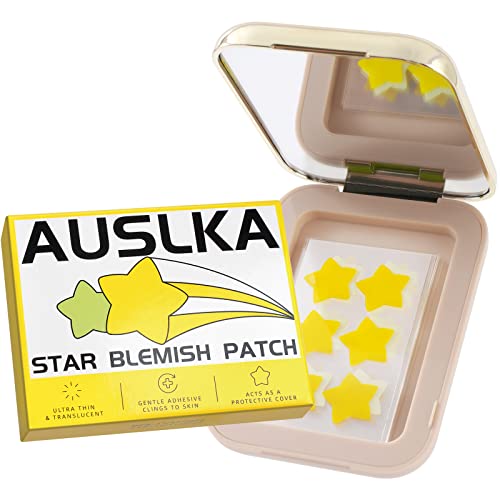 Home Skin Care AUSLKA Star Pimple Patch – Hydrocolloid Spot Dots – Blemishes Patch – Pimple Stickers – Cute Star Shape -With Mirror 60 Count – Green & Yellow –