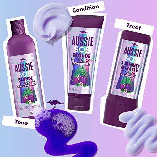- Blonde Hydration Set includes Purple Shampoo for Blonde Hair (290 ml), Blonde Toning Hair Conditioner (200 ml) for nourishment and shine and Aussie 3 Minute Miracle Deep Treatment Hair Mask (250 ml) for bleached, blonde and silver hair