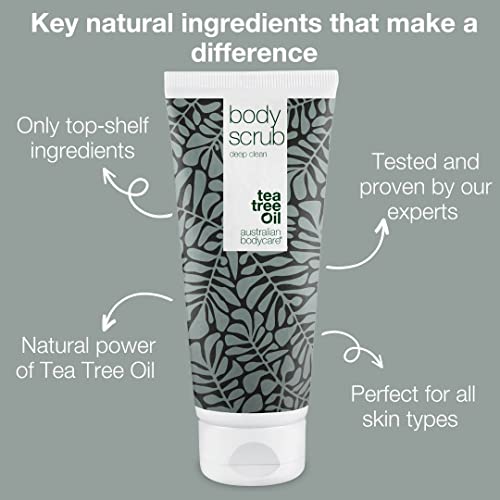 - 🌿 PRODUCT INFO: Body Scrub is dermatologically tested and can be used for your everyday skin care. Contains crushed Sandalwood Nut Shell, glycerin, allantoin and 100% natural Australian Tea Tree Oil of pharmaceutical quality. Every single natural active ingredient was carefully selected for each body product. All products from Australian Bodycare are dermatologically tested and 100% vegan.