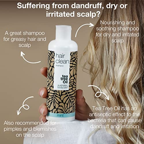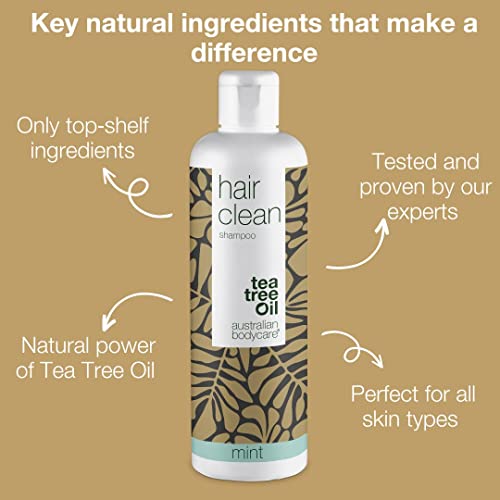 - 🌿 PRODUCT INFO: Contains 100% natural australian Tea Tree Oil of pharmaceutical quality. The unique composition of natural ingredients keep the scalp moisturized and soothe the skin, to keep your hair and scalp from drying out after shampooing. The Shampoo can also be used as daily care for people who suffer from psoriasis or eczema on the scalp. All products from Australian Bodycare are dermatologically tested and 100% vegan.