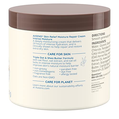 Aveeno Skin Relief Intense Moisture Repair Cream with Triple Oat Complex, Ceramide & Rich Emollients, Steroid- & Fragrance-Free Moisturizing Body