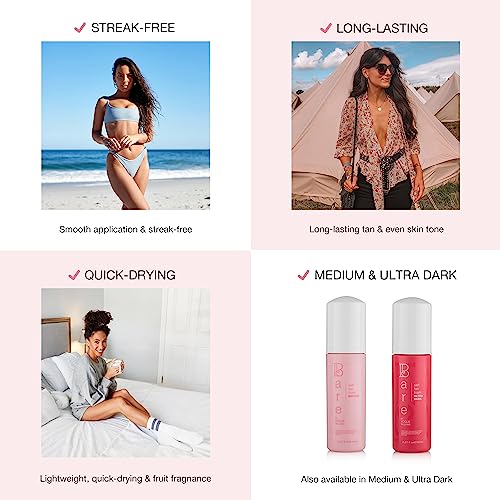 • Dark Fake Tan: Get a gorgeous, sun-kissed glow with Bare by Vogue Self Tanning Foam. Our Dark formula is perfect for both face and body, providing a natural-looking tan that lasts.