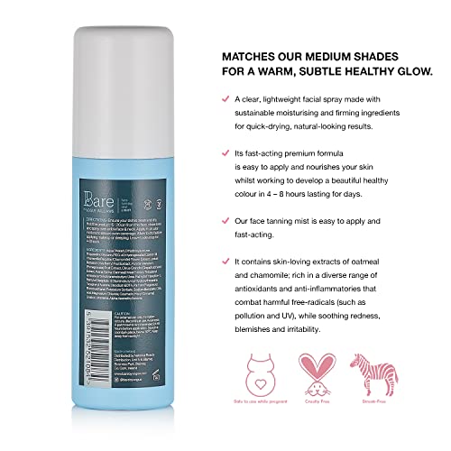 • SELF TAN FACE MIST: Achieve a natural-looking, sun-kissed glow with Bare by Vogue Fake Tan Face Mist. This easy-to-use spray tan solution is specially formulated for the face, providing an even and streak-free tan that lasts for days. Say goodbye to pale, dull skin and hello to a radiant complexion with this face tan mist.