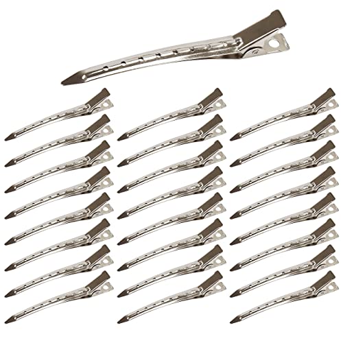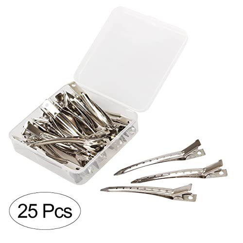 Beayuer 25 Pieces Duck Bill Hair Clips, 3.5 Inch Rustproof Metal Alligator Curl Clips with Holes for Hair Styling, Hair Coloring, Thick Hair Sect