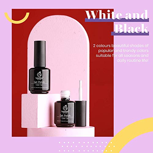 Beetles Gel Nail Polishes- 2 Pcs 15ml Black White Colors Gel Polish Set Soak Off Nail Lamp Nail Gel Polish Nail Art Manicure Salon DIY Nail Polis
