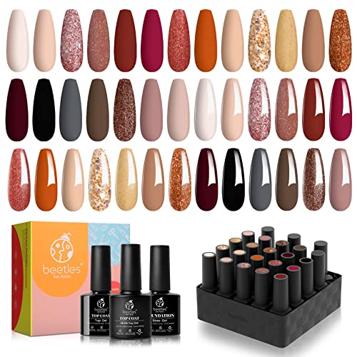 - Ideal Gift for Her: Beetles gel nail polish kit comes in a seasonal gift box. They are appropriate for any holiday or special event,such as birthday, holiday, anniversary, Christmas, Valentine's Day, Halloween gift. No more struggle to decide which colors should to select. Solid and glitter nail designs can be freely finished with these fall winter color gel.