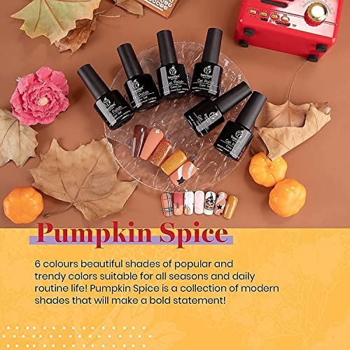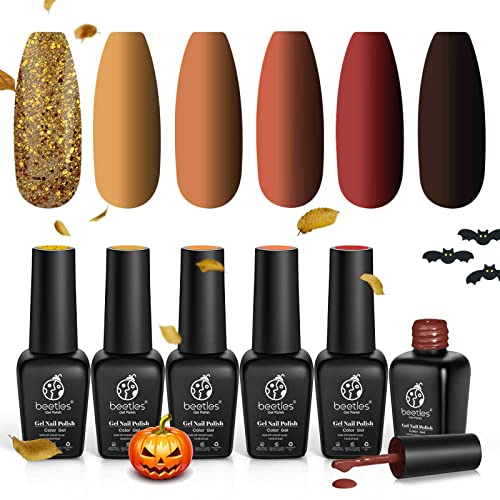Beetles Gel Nail Polishes- Pumpkin Spice Gel Polish Set, Yellow Nail Gel Polish Red Orange Glitter Nail Polish Kit Soak Off Nail Lamp Cured Chris