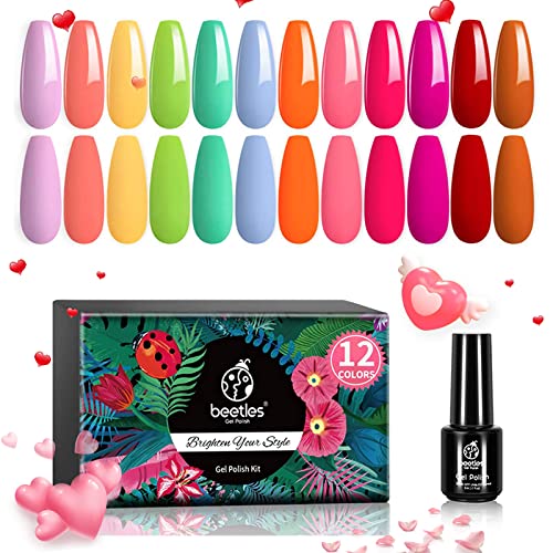 - WHAT YOU GET: Beetles gel polish set 12 X Mini Gel Colours (5ml./each bottle). 12 Gorgeous shuch as neon orange,magenta, hot pink, light pink and sky blue - all shades of Gel Polish hassle-free and friendly customer service.