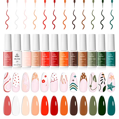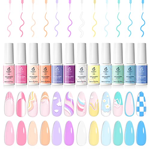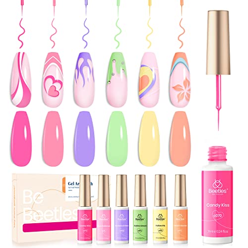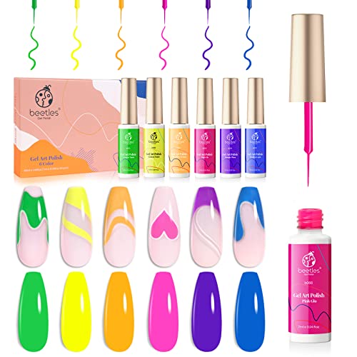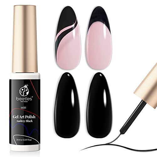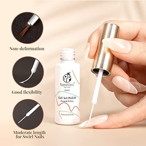 - Beetles Swirl Nail Art Gel Polish: Perfect for those trendy squiggly lines bstract painting that are so popular now… also works perfect for adding a French line! With the built thin brushes in, you don't have to get out your set of brushes for adding details and lines.
