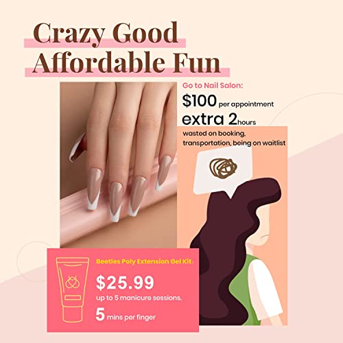 • Beetles Poly Nail Extension Gel Kit for Nails: If you extend your nails at a nail salon each time, you would need to spend roughly 2 hours and $50-$100! Our extension gel kit, which includes everything you need to achieve gorgeous nails at home, will only cost you $19.99 and you’ll spend half the amount of time doing them! Plus, you don't need to go to the nail salon every time you’d like to change them and you can enjoy the fun of DIY at home!