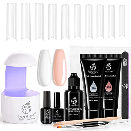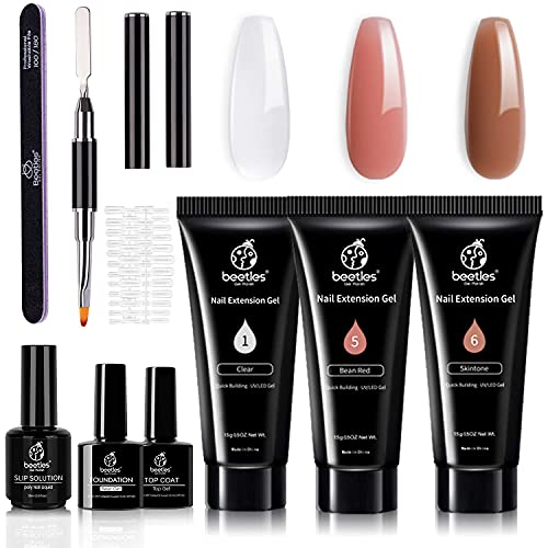 Home Nail Care Beetles Poly Nail Extension Gel Kit Clear Nude Pink 1OZ PolyNail Colors for Builder Nail Gel Nail Art Kit with Poly Brush Nail Clip Dual Forms Ty