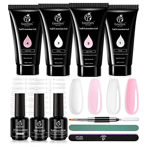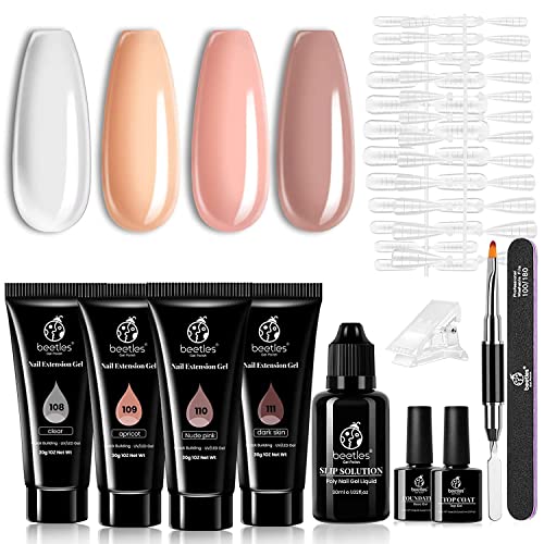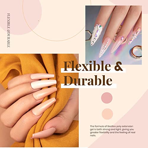 Beetles Poly Nail Extension Gel Kit Clear Nude Pink 1OZ PolyNail Colors for Builder Nail Gel Nail Art Kit with Poly Brush Nail Clip Dual Forms Ty