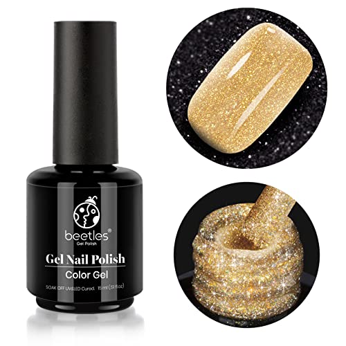 - Personal Style: Gorgeous Beetles reflective gel nail polish Champagne Gold reflective yellow glitter color, sparkly nails shining differently under different lights.
