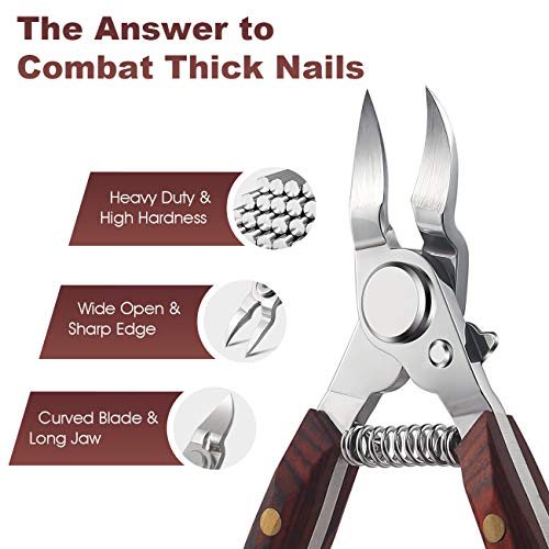 - ●Wide Jaws, Very sharp: The sharpness of the wide jaws allows users to cut down extra thick and sturdy toenails without much stress. The jaws are almost 1 inch wide, and the blades are curved to go around your nails correctly. The tip of this tool is very sharp and can help you remove dirt that lies between the harsh and ingrown nails.