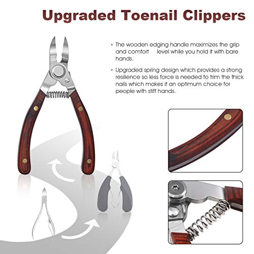 - ●Unique Wooden Handle: We added the wooden handle so it would be gentle on your hands. As for older adults who can’t grab the handle properly, the smooth wooden texture will help them steady their grip with less pain. These handles are gentle on the hands as you hold them tightly to cut down your thick and ingrown nails.
