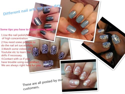 • 💅Using Tips: Ordinary nail polish can't show the perfect transfer effect due to the thinner concentration, please use it with professional nail stamping polish. Reference Asin: B07GKQ684X,B088LWVC85. Have trouble using the product? Watch the 30s instructional video here: https://www.youtube.com/watch?v=rZu71EgxjrI