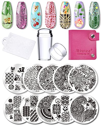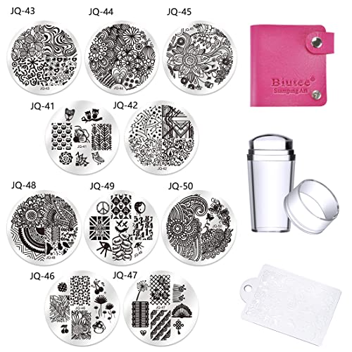 Biutee Nail Art Stamping Kits - 10 Pcs Nail Stamping Plates Sets with 1 Stamper 1 Scraper and 1 Storage Bag, Flowers, Lace, Geometric Patterns Na Biutee Nail Art Stamping Kits - 10 Pcs Nail Stamping Plates Sets with 1 Stamper 1 Scraper and 1 Storage Bag, Flowers, Lace, Geometric Patterns Na