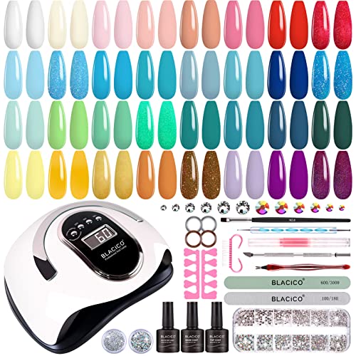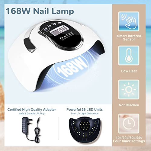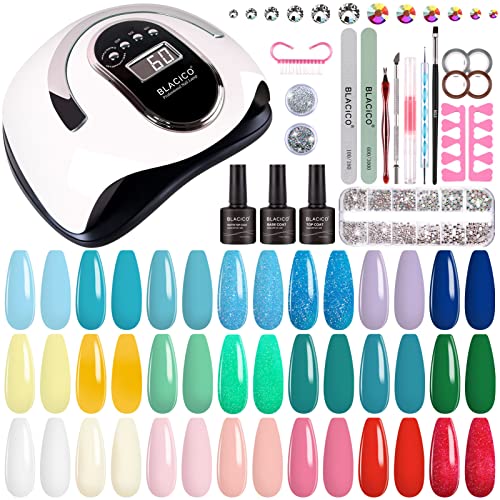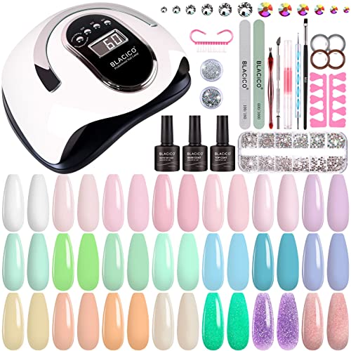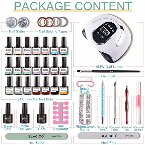 BLACICO Gel Nail Polish Kit with UV Light 168W Nail Dryer, 21 Colors White Nude Glitter Gel Nail Polish Set, Nail Lamp, No Wipe Base Top Coat, Ma BLACICO Gel Nail Polish Kit with UV Light 168W Nail Dryer, 21 Colors White Nude Glitter Gel Nail Polish Set, Nail Lamp, No Wipe Base Top Coat, Ma