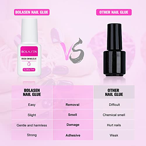 - ❤️【Nail Glue Extra Strong】❤️BOLASEN False nail glue is fast drying, quick bonding, perfect for sticking false nails, broken nails and small nail art decorations, such as rhinestone, beads & gemstone.