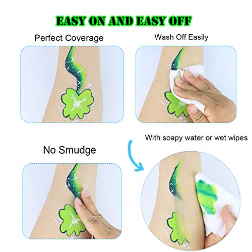 - Easy to Use and Wash Off:Our face paints are water activated and dries fast with extremely pigmented,provide long lasting,smooth and excellent coverage,less prone to fading or cracking.Different from cleaning wax-based or oil-based painting,you can easy wash off with soap and water or wet wipes.