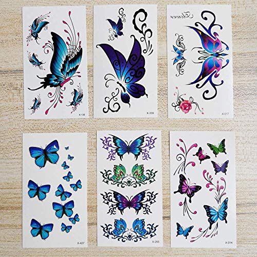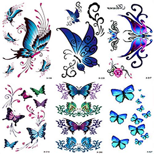 - 6 Sheets Temporary Tattoos Butterfly ; 6 types, 1 pieces each.