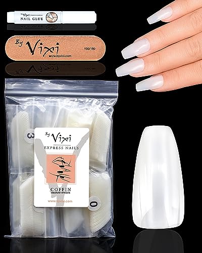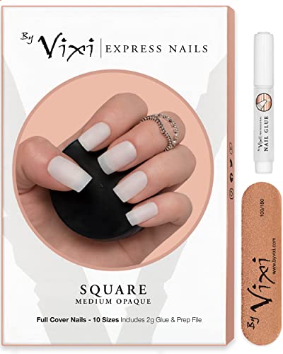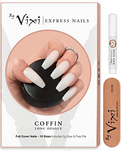 • APPLY IN MINUTES: Prep, glue and stick, the perfect manicure in minutes! This By Vixi Press-On Nail Set comes with everything you need: The file to prep, buff and shape your natural and false nails, the glue for a lasting hold and of course the elegant Opaque Oval false nails.