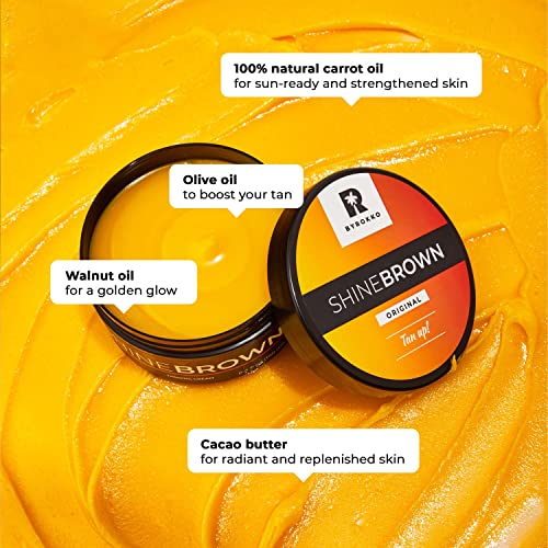 - 🍊 Achieve a natural, darker & long-lasting tan with less exposure to the sun or sunbed with our Premium Shine Brown Original tan accelerator. Super effective in tanning beds or in the sun.