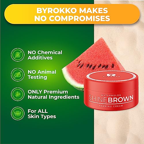 - 🍉This is a summer & holiday essential and most effective tanning cream so far! We collected finest, premium ingredients for a perfect experience and an even more perfect tan. Our Watermelon cream will help you achieve your deepest natural tan faster – either in the sun or in sunbeds.