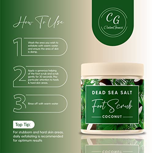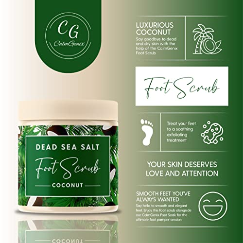 - DEAD SEA SALT FOOT SCRUB: Exfoliate, soften, and cleanse your feet with the Calm Genix dead sea salt foot scrub exfoliator. Say yes to a rejuvenating and exfoliating scrub that uses the power of dead sea salt to deeply cleanse your pores, combat dead and hard skin, and moisturise your feet.