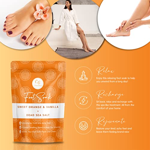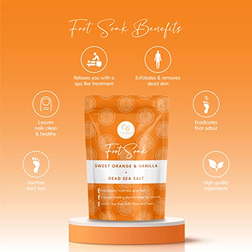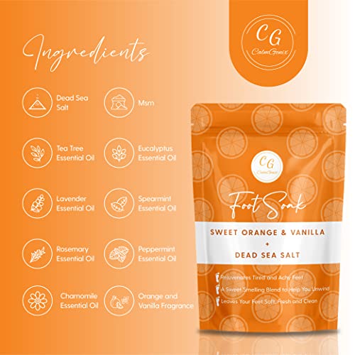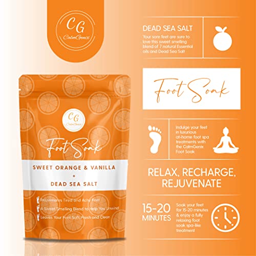 - 💛 SELF-INDULGING FOOT CARE: Rejuvenate your feet with a self-love and foot care treatment by including the CalmGenix foot soak in your hygiene and beauty routine. Say yes to foot bath salts and oils that are naturally healing and beautifying for your feet while also relaxing for the mind. Reinvigorate your feet with a foot soak that is enriched with citrusy and sweet Vanilla and Orange scent.