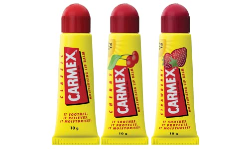 Carmex Cherry, Classic & Strawberry Tube 3-Pieces Mixed Pack SPF15, 10 g (Pack of 3)