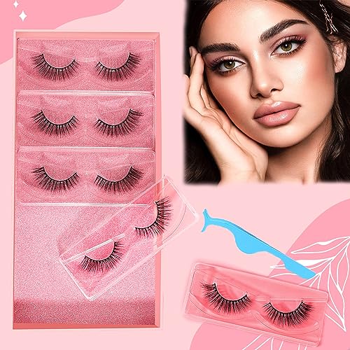 Home Make Up Cat Eye Eyelashes, Russian Strip Natural Look Faux Mink Individual Fake Lashes Fluffy Wispy Manga Classic Thick Cluster False Eyelashes Includes