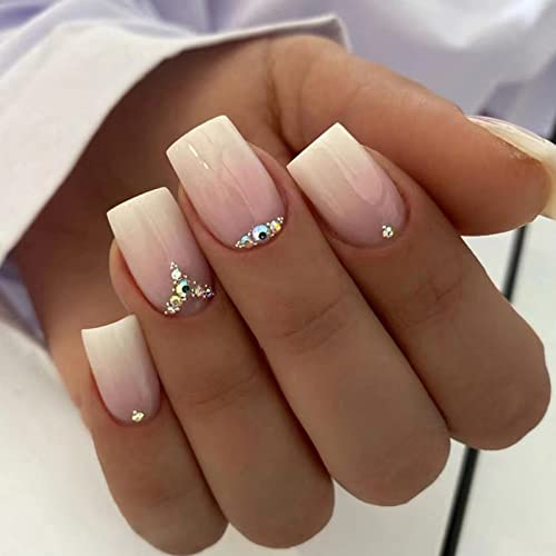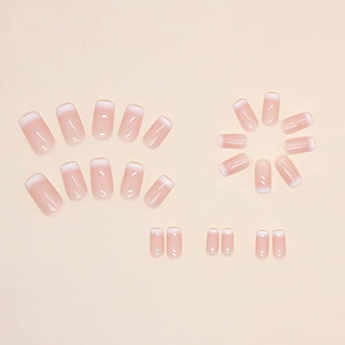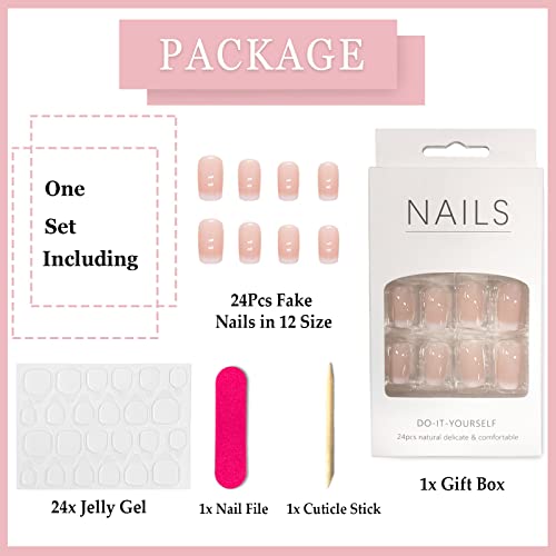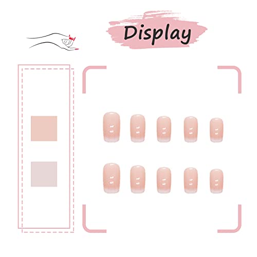 Ceboic 24Pcs Square False Nails Short, Pink Gradient French Tip Nude Press on Nails, Glossy Removable Glue on Nails with Glue Stickers, Acrylic F
