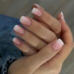 Home Nail Care Ceboic 24Pcs Square False Nails Short, Pink Gradient French Tip Nude Press on Nails, Glossy Removable Glue on Nails with Glue Stickers, Acrylic F