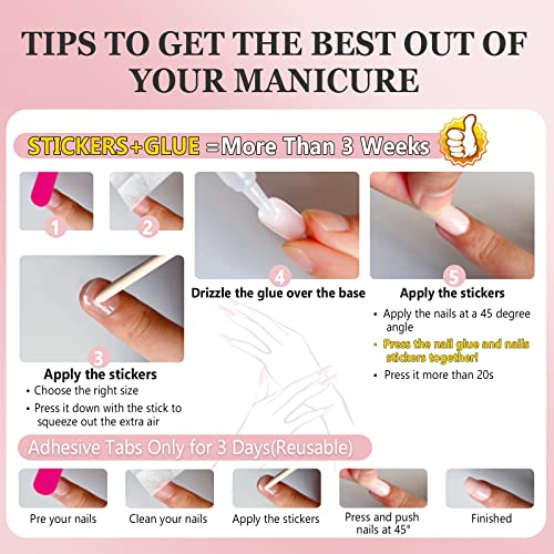 • 💞【Safety and Environmental Protection】These stick on nails are made of high-quality healthy ABS material, no irritating smell, higher gloss, harmless to nails or body, durable and not easy to fade, and can be used for many times. Provide you with a wonderful manicure experience.