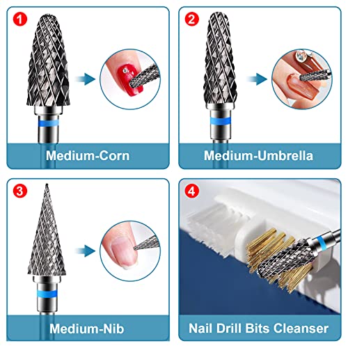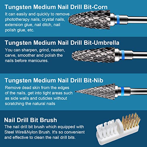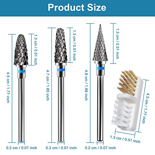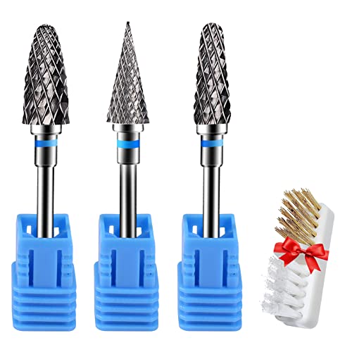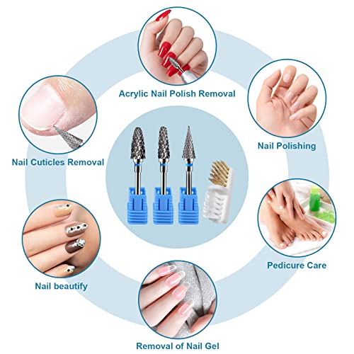 - 【3PCS Nail Drill Bits Sets】Nail drill bits set includes 3pcs different shapes of medium grit tungsten carbide nail art bits, 1pc nail brush. Ideal for professional nail technicians or nail art beginners.