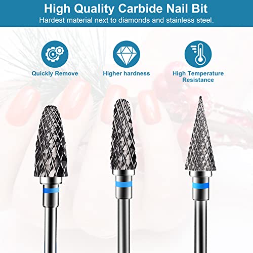 - 【Premium Tungsten Carbide Nail Drill Bit】Made of tungsten carbide material, which is sturdy and sharp enough to remove sharpened smoothen acrylic gel nails, thick extension nails, builder gel nails, and natural nails. Superior nail drill bits protect your skin due to heat resistance.