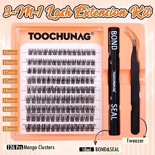 - 3-in-1 Lash Extension Kit: The cluster 3-in-1 Lash Extension Kit: The cluster lashes kit contains 126 lash clusters, a strong hold lash glue and lash seal, and a professional lash tweezer. Gives you more convenience and is perfect for beginners.kit contains 126 lash clusters, a strong hold lash glue and lash seal, and a professional lash tweezer. Gives you more convenience and is perfect for beginners.