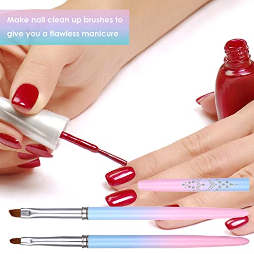 - 【Premium Material】This high quality nail polish clean up brush is made with synthetic bristles and a metal brush handle. Nail painting brushes feature a beautiful gradient pink&blue handle, easy to hold and paint, and are stylish with function. The metal handle of this must-have brush is designed to hold up to nail polish remover, and different from traditional brushes with wooden handles, this brush will stand up to wear and use.