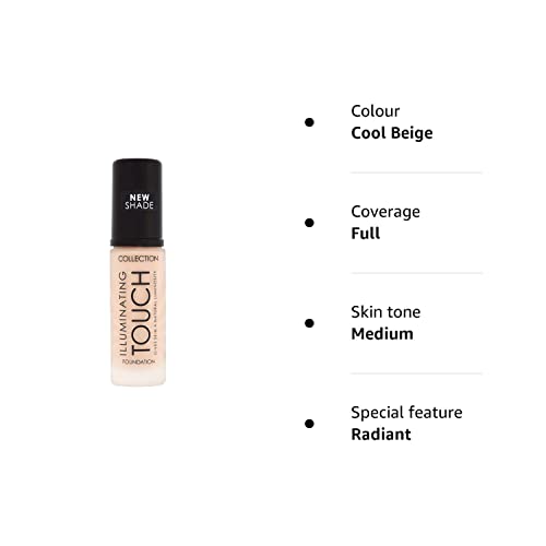 Collection Cosmetics Illuminating Touch Long Lasting, All Day Glow, Medium Coverage Vegan Foundation, 30ml, Cool Beige Collection Cosmetics Illuminating Touch Long Lasting, All Day Glow, Medium Coverage Vegan Foundation, 30ml, Cool Beige