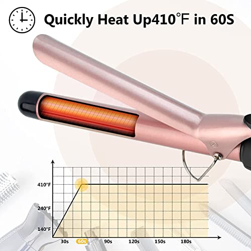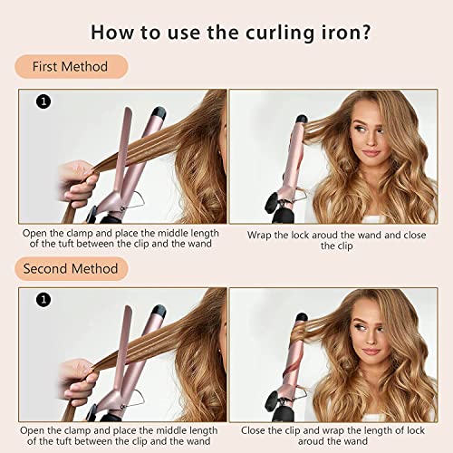 - ✅UPGRADE CERAMIC CURLING IRONS: The new ceramic technology keep more moisture and make your hair nature, healthy, glide smoothly without any pulling or snagging, reduce the damage of high heat while working, creating loose and soft hair styles with less frizz, shiny curls that last all day.