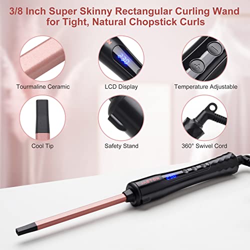 Curling Wand 9MM, Thin Curling Iron, Tight Curls LCD Display 100-230°C for All Hair Types, Tourmaline Ceramic Barrel 30-Second Heat-Up, Long&Shor